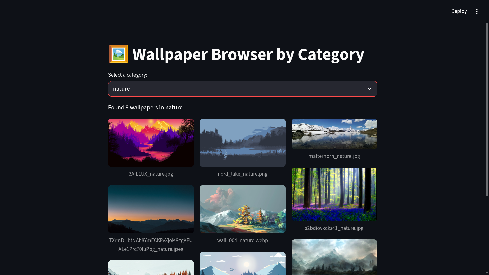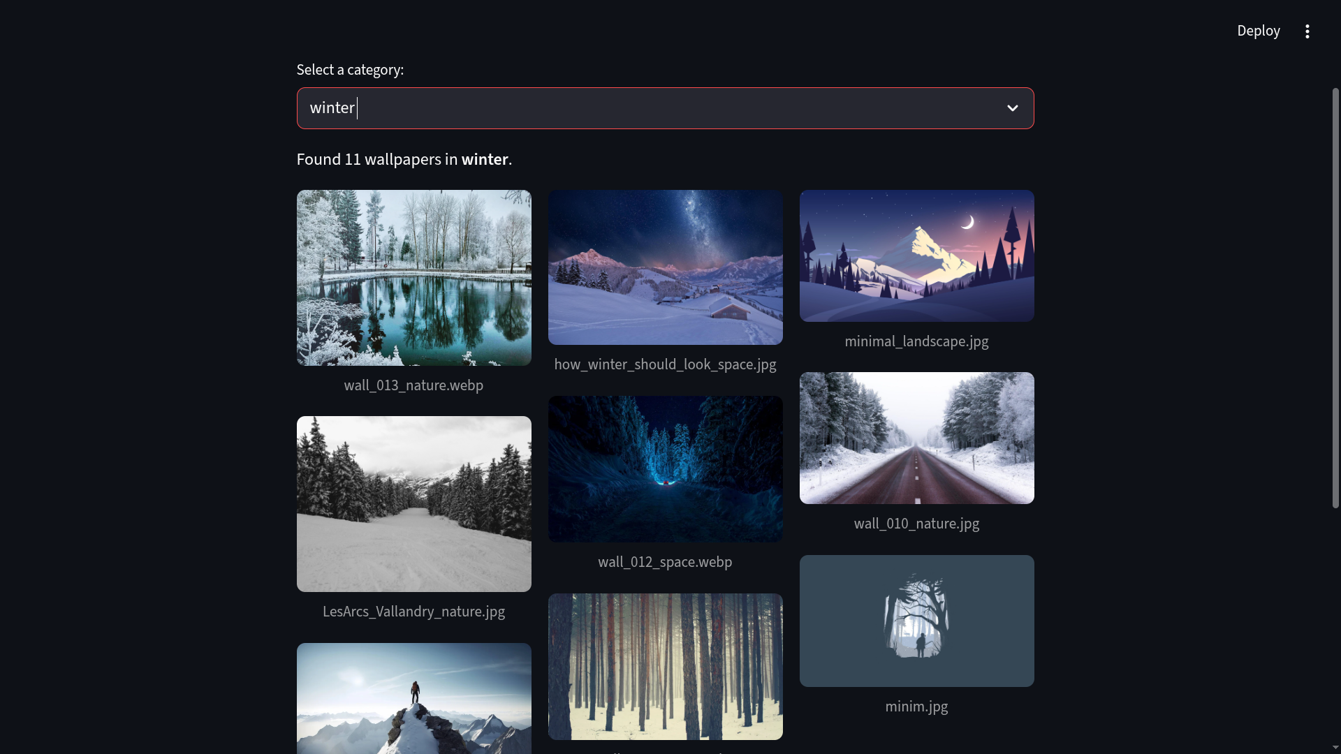 I also made a simple streamlit app to visualise the wallpapers, selecting a category.